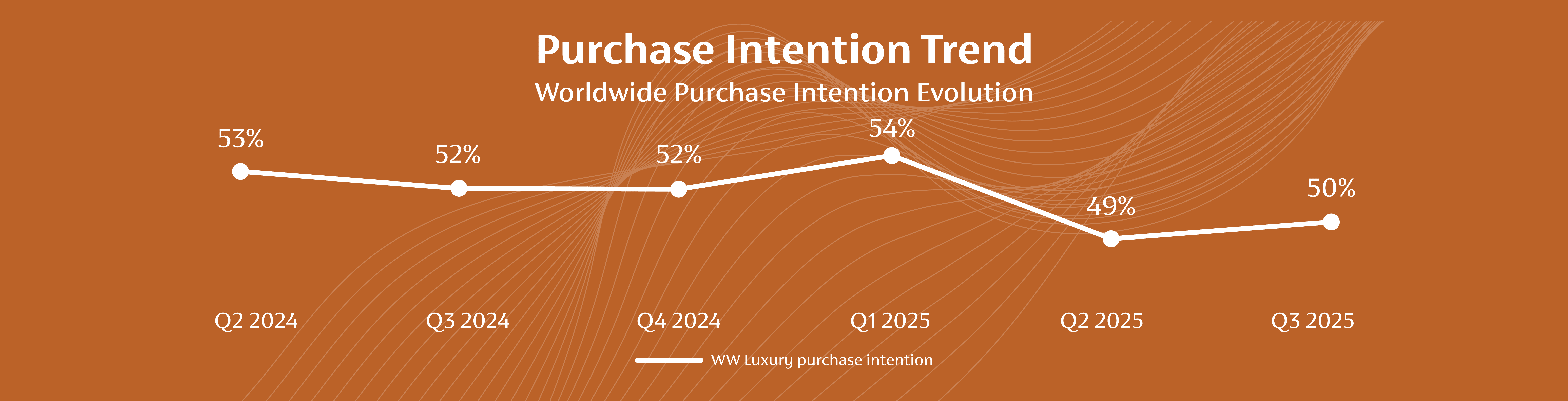 Compared to Q3 2024, overall luxury retail purchase intention experienced a slight decline, dropping from 52% to 50% in Q3 2025. While this shift may appear marginal, it masks significant variations between sectors.
